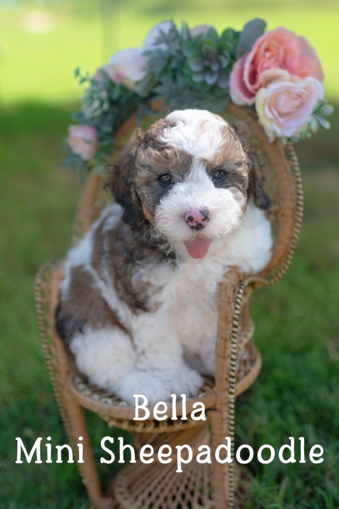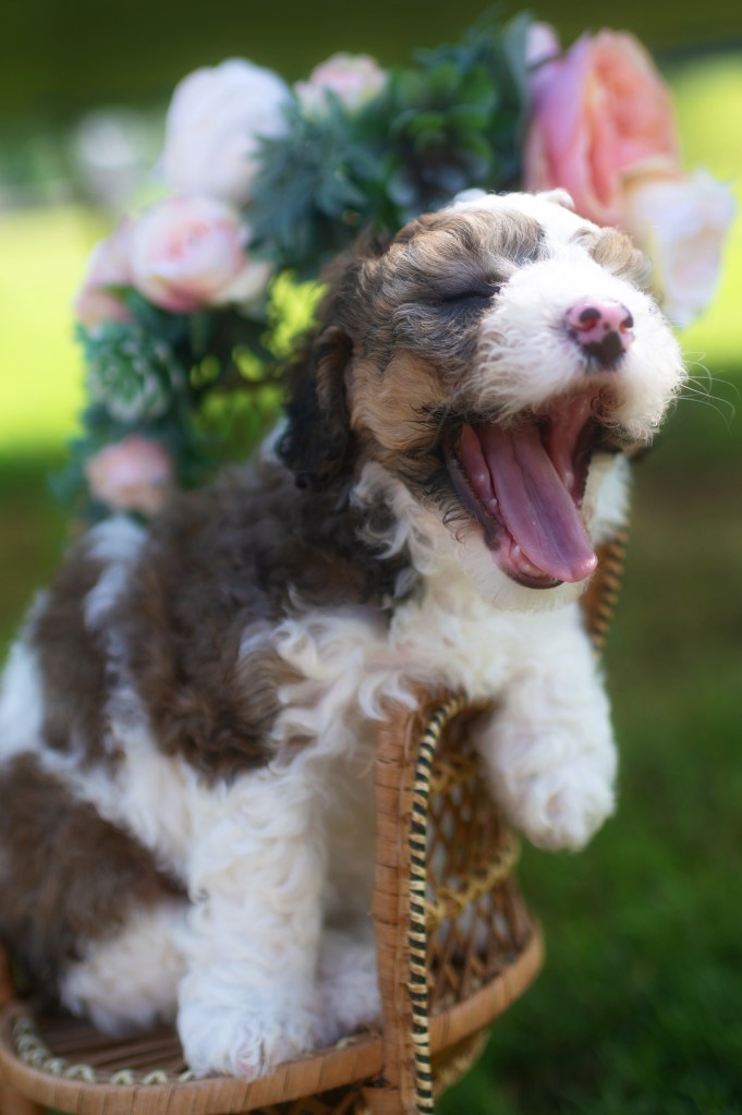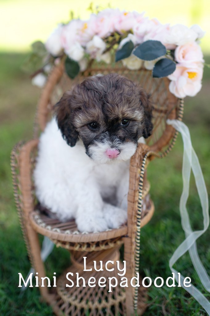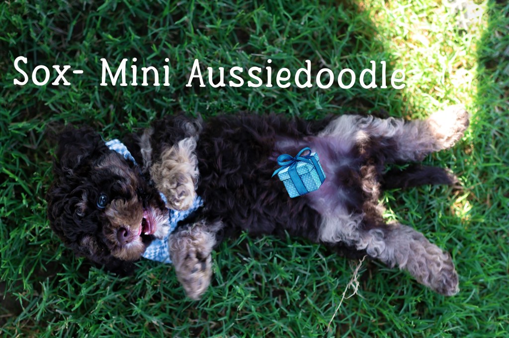 We have 7 pups available to go home on June 20th! 2 mini aussiedoodle boys (charting to be 12-15 pounds full grown) and 5 mini sheepadoodles (1 male, 4 females- male will be bigger, maybe 20-25, and females will likely be under 20, even as small as 15 because dad Maui is very small!)